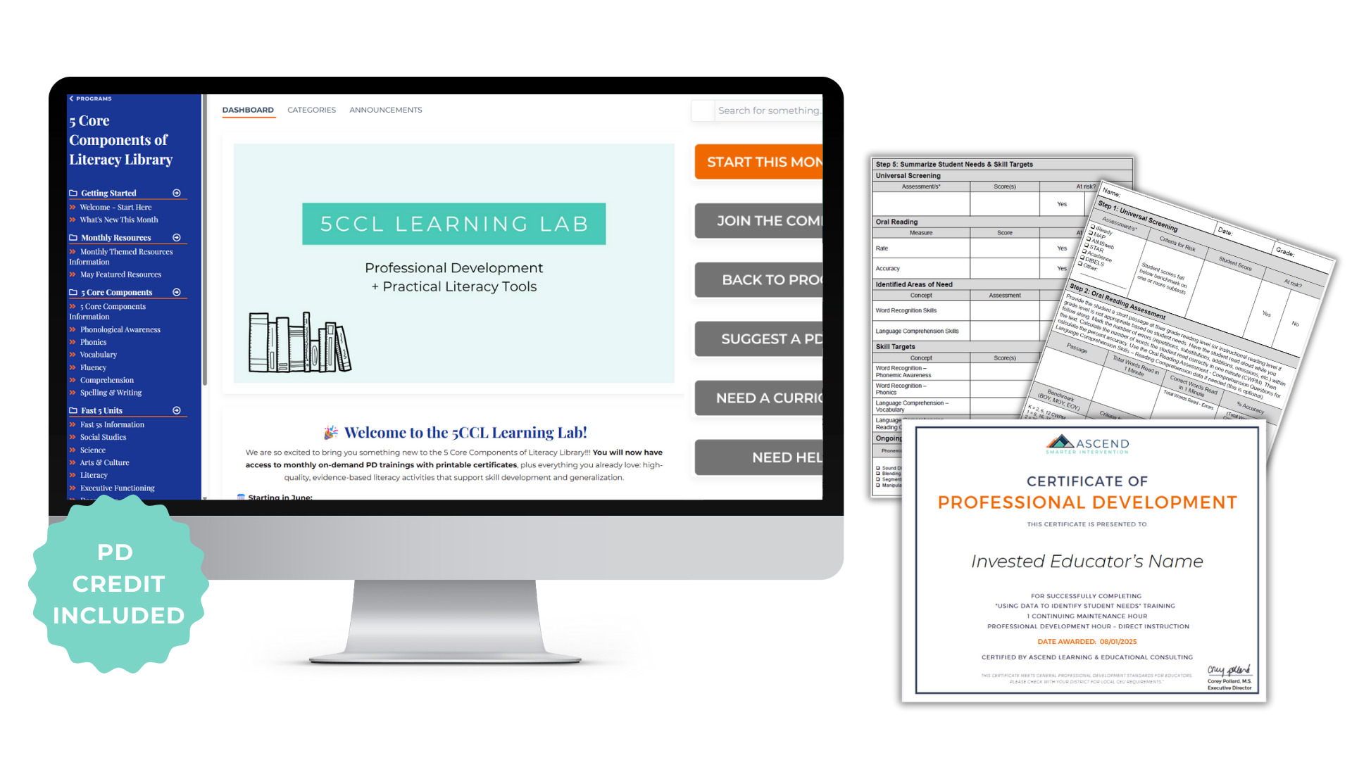 The 5CCL Learning Lab gives you targeted PD, classroom-ready literacy activities, and practical support that actually makes your job easier, not harder.