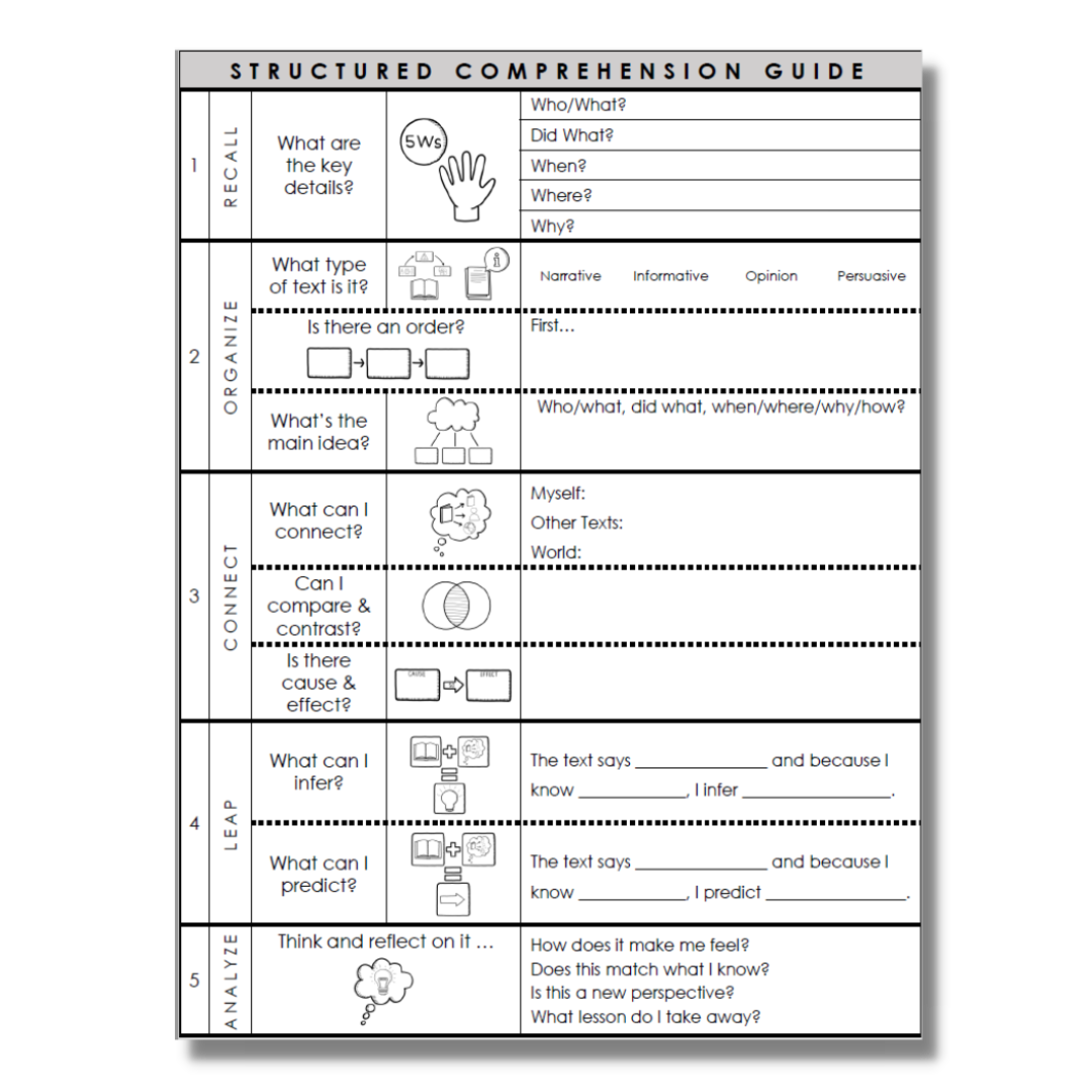 So, for example, when teaching students how to use graphic organizers to support comprehension, we align a graphic organizer to each comprehension strategy. This way they now only know how to use each graphic organizer but WHEN to use each organizer.