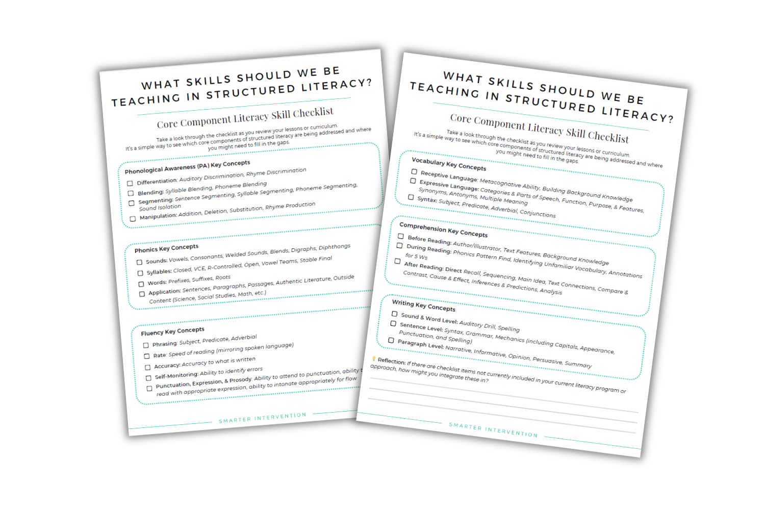 To make this easier, we’ve created a Structured Literacy Scope Checklist. This checklist breaks down the specific skills within each literacy component so you can quickly see what’s already included in your instruction and where you may need to fill in gaps.