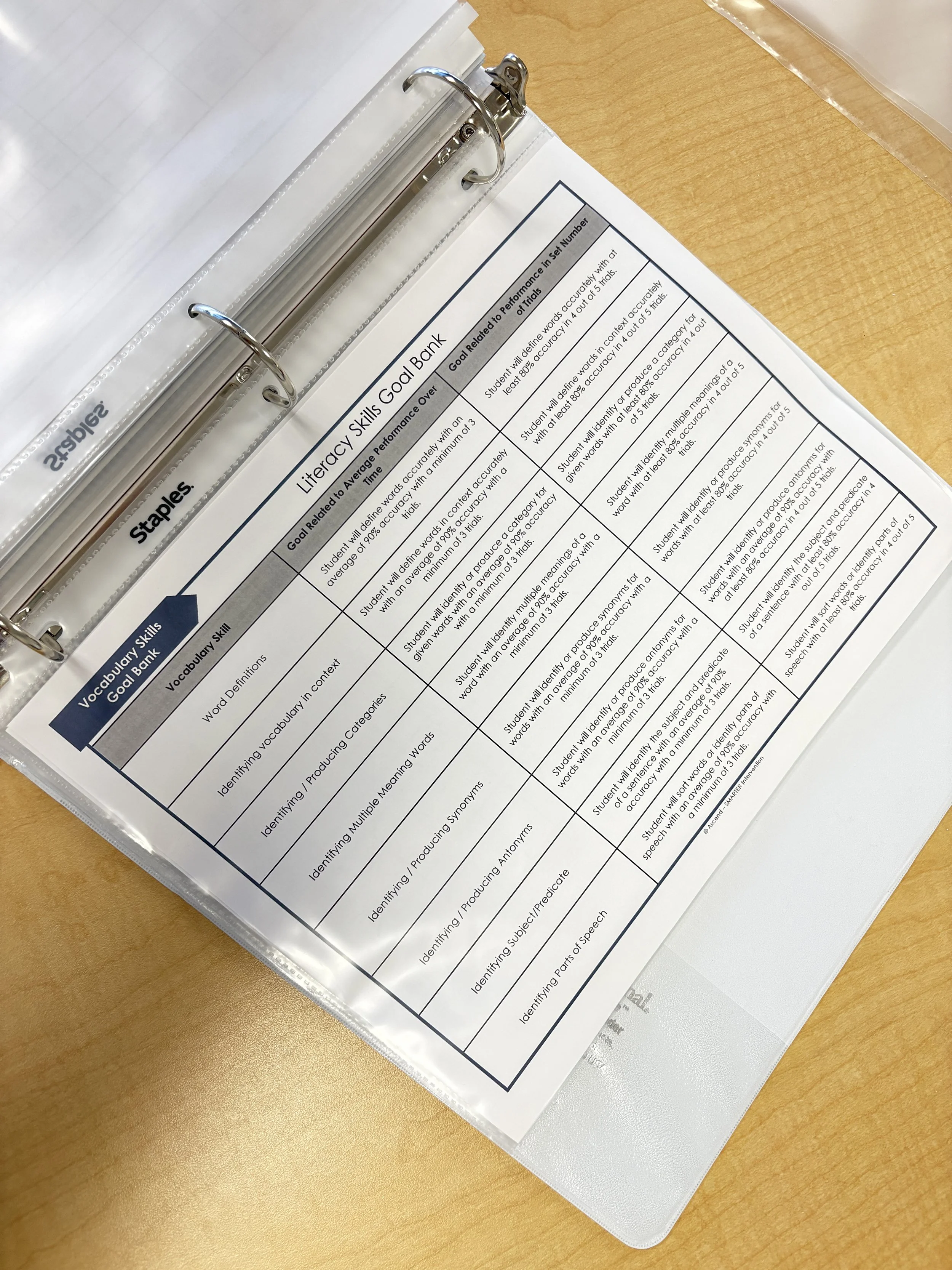 When we looked at her goals, they focused on decoding multisyllable words, recognizing sight words, and spelling with suffixes.
