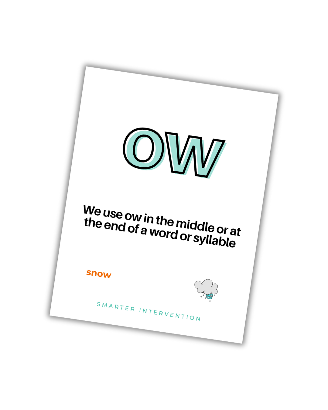 Grab our Free Phonics Rules Posters! They’re perfect for hanging in your classroom or using as a quick reference when introducing a new pattern (not only will you get the ow pattern, but tons of other patterns we teach too!).