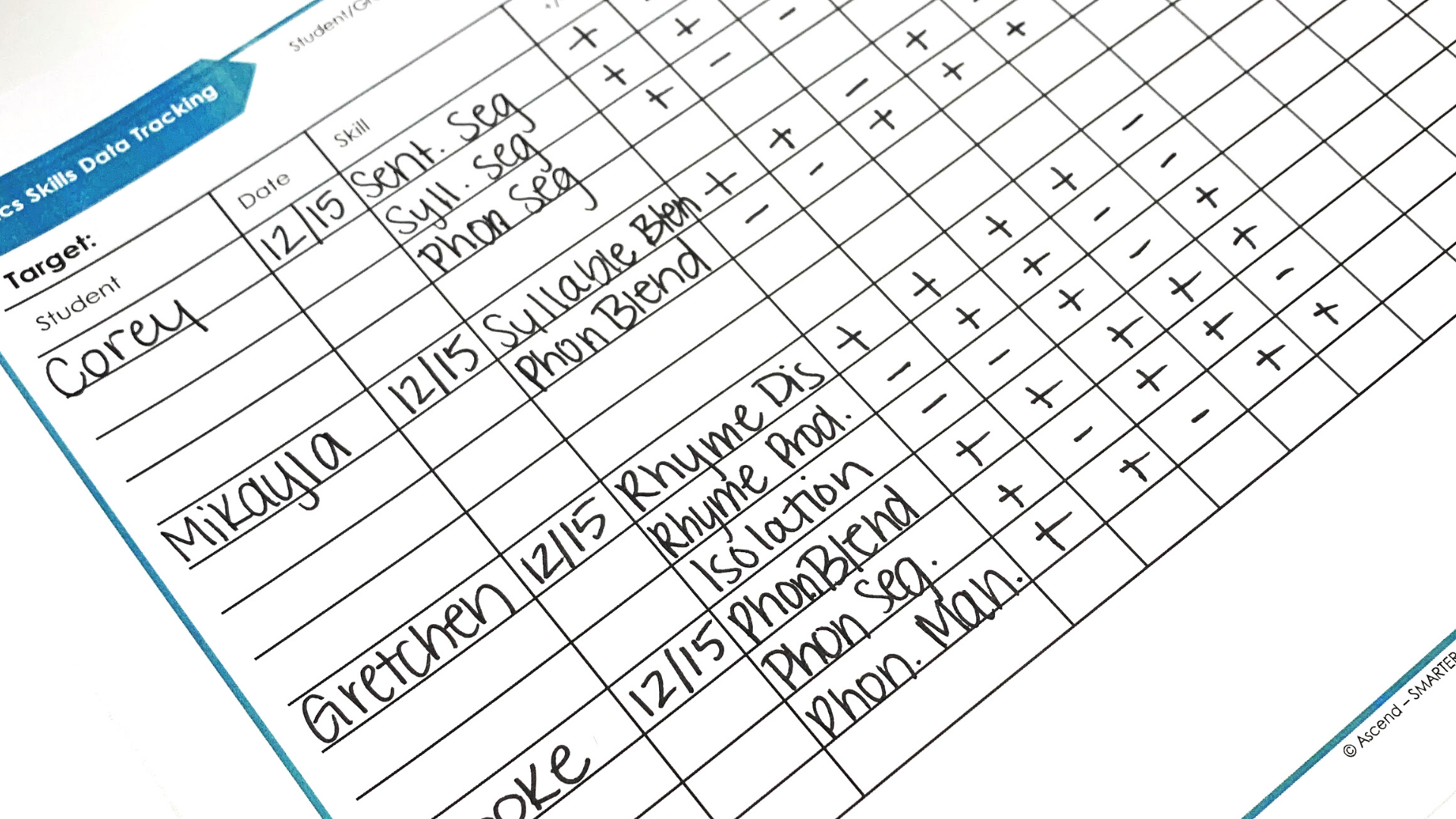 In order to collect lesson-based data, we simply track whether students answered correctly when provided questions in our intervention (small-group) instruction.