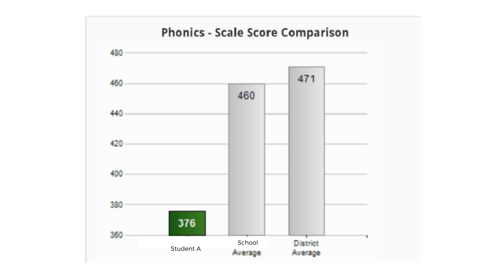 Received a Scale Score of 376 for Phonics, placing him at a Kindergarten Level.