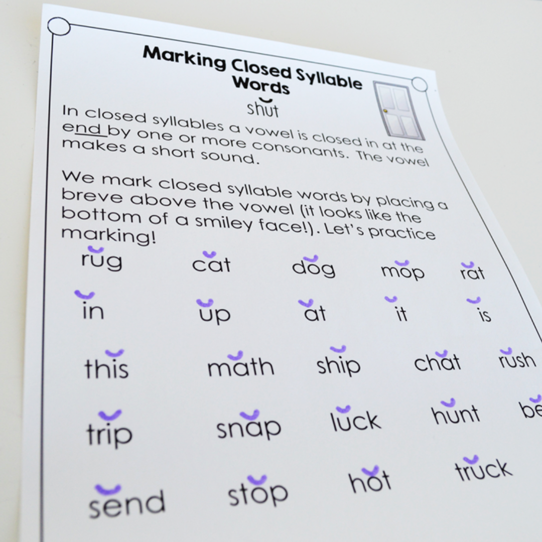 We start our syllable type instruction with closed syllables. You can find more information on the other syllable types here: