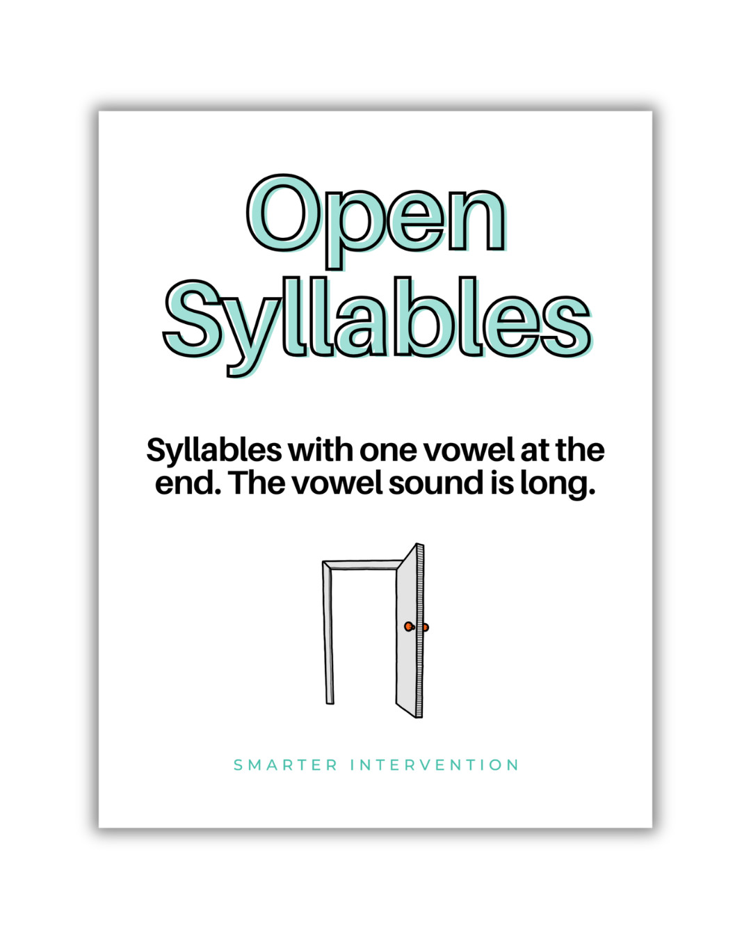 It can be fun to use stories or visuals to help teach the concept of open syllables. This can also help reinforce the concept of closed syllables. Stories and visuals can help anchor concepts for students. We like to use the visual of a door that is open.