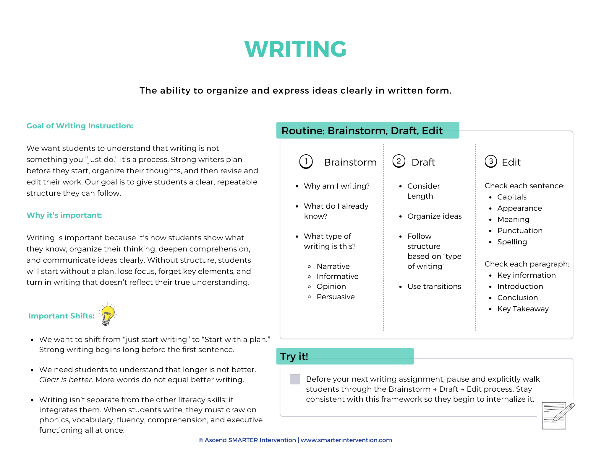 This may look like practicing letter formation and handwriting with our youngest students (and older students if they need it). It may be helping make spelling or sentence-level writing easier and more automatic for students.