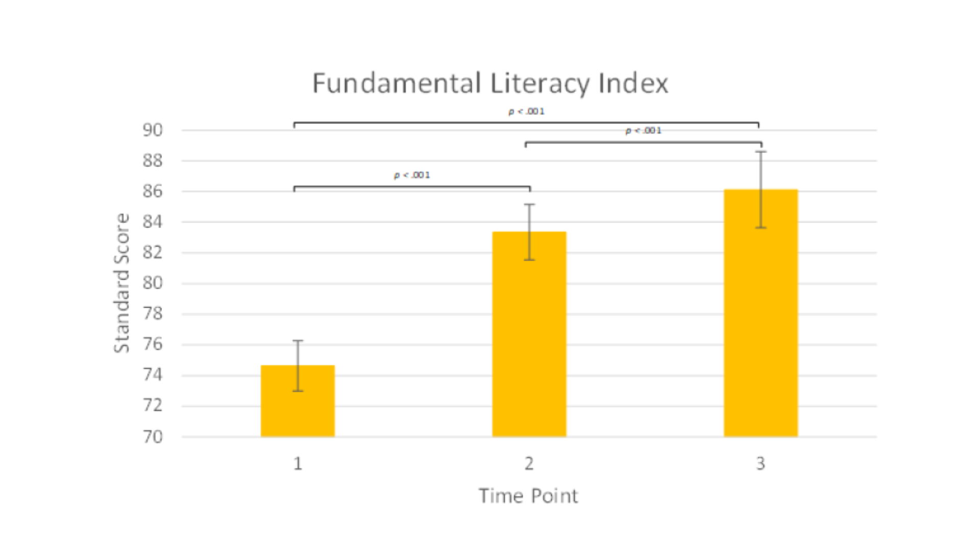 Students made statistically significant gains in literacy and fluency within the first six months of intervention, with continued growth observed over time.